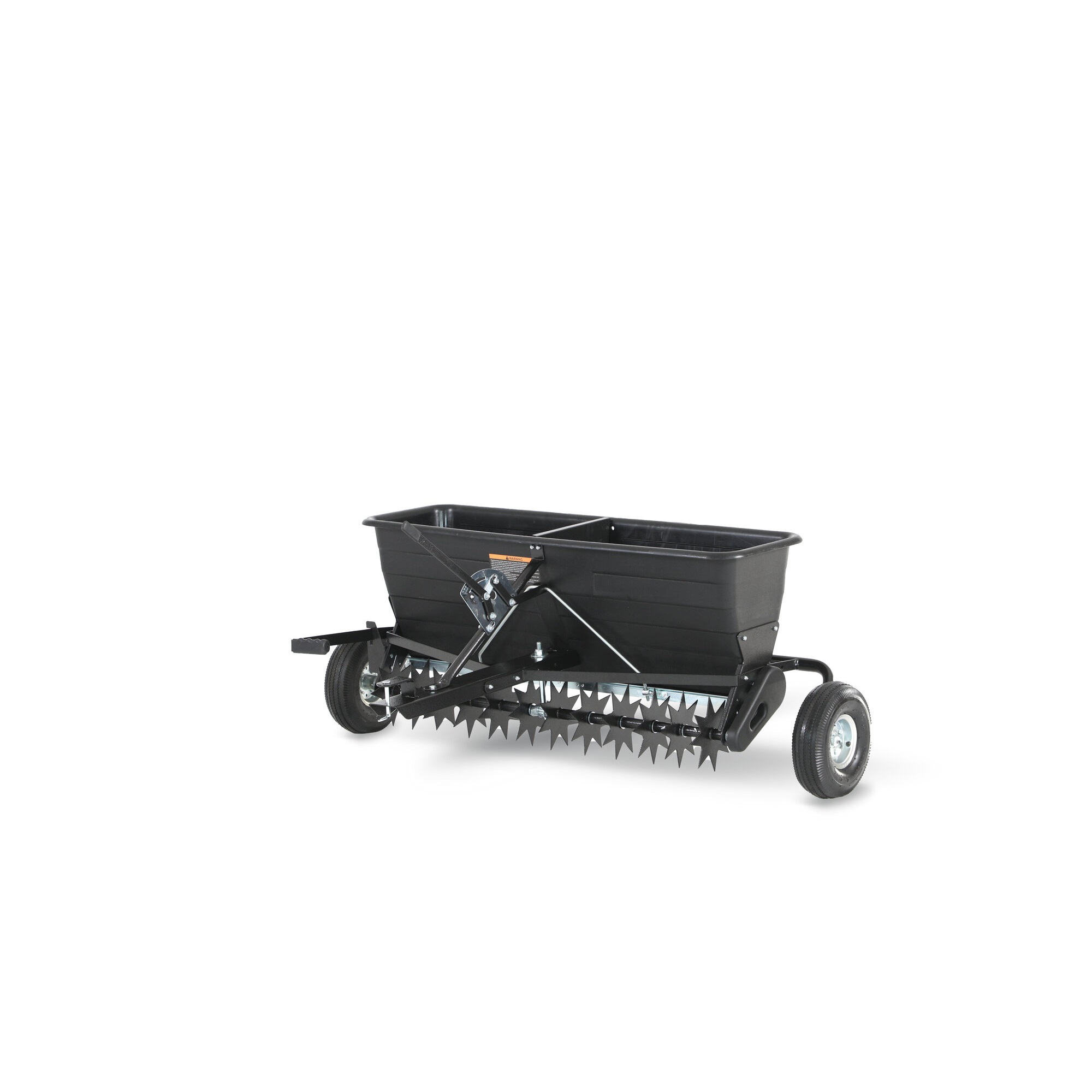Tažený provzdušňovač na távu VARI PT-1000 pro travní traktory a ridery Tažený provzdušňovač se sypačem PTS-1000 je praktické multifunkční zařízení, které v jednom kroku provzdušňuje půdu a zároveň aplikuje hnojivo nebo jiné sypké materiály. Je ideální pro údržbu větších travnatých ploch, zahrad, parků, sportovišť i rozsáhlých ploch, jako jsou dlouhé příjezdové cesty. Zařízení lze snadno připojit za zahradní traktor. Provzdušňování zajišťuje 12 ocelových hvězdic, které pronikají do půdy do hloubky až 6 cm. Tím podporují lepší přístup vzduchu, vody a živin ke kořenovému systému a přispívají ke zdravějšímu a hustšímu trávníku. Velká pracovní šíře 102 cm umožňuje rychlou a efektivní práci i na rozsáhlých plochách. Součástí zařízení je integrovaný sypač s kapacitou 80 litrů, který vystačí na pokrytí plochy až 3 700 m2 (0,92 akru). Průtok materiálu lze pohodlně regulovat pomocí ovládací páky. Stabilitu a plynulý pojezd zajišťují 10" kola s pneumatikami, která se dobře přizpůsobí nerovnému terénu. VÝHODY provzdušňování a hnojení v jednom kroku šíře záběru 102 cm 12 provzdušňovacích hvězdic pracovní hloubka až 6 cm integrovaný sypač s kapacitou 80 l rovnoměrná aplikace materiálu stabilní konstrukce a snadná manipulace vhodný pro zahradní traktory Pro dobrou účinost a funkci je potřeba zatížit a nastavit správnou rychlost. Pracovní hloubka 6 cm Plošné pokrytí 3700 m2 Šíře záběru 102 cm Rozměr kol 10" Kapacita násypky 80 l Počet provzdušňovacích hvězdic 12 Hmotnost 30 kg Šíře záběru 102 cm Hmotnost: 30,0 kgHmotnost: 25 kg