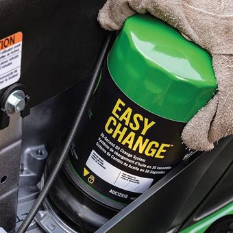 Filtr John Deere Easy Change ™ je další nádržka motorového oleje. Výměna filtrů odstraní zachycené nečistoty a nahradí přibližně 0,76 l (0,8 qt) motorového oleje.